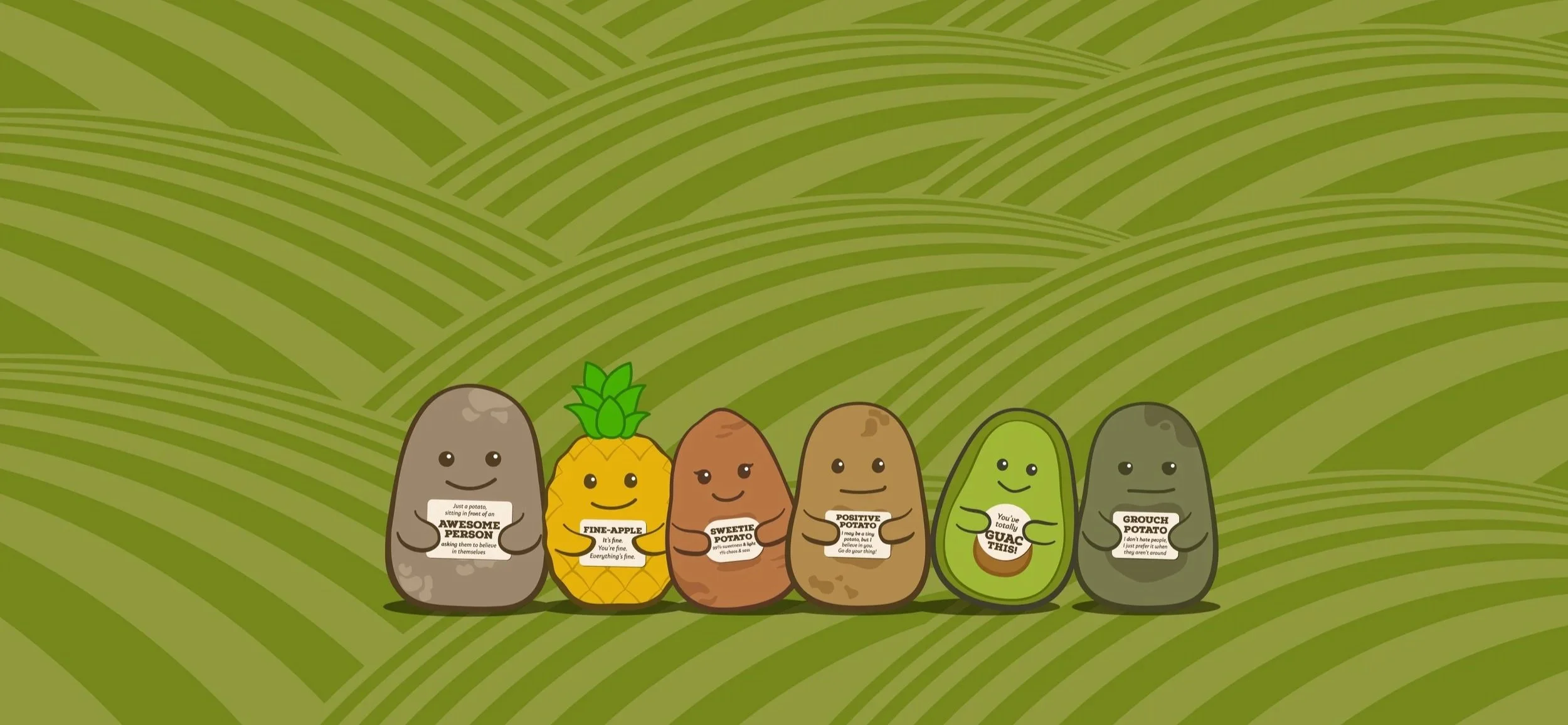 As the brand grew, we were asked to explore narrative formats, leading to the Positive Potato book. I illustrated the visuals, building on a story written by Bex, and extended the brand’s style into publishing. This project showed the flexibility of the system I’d created: it could move seamlessly from packaging to publishing, always retaining the same warmth and identity.